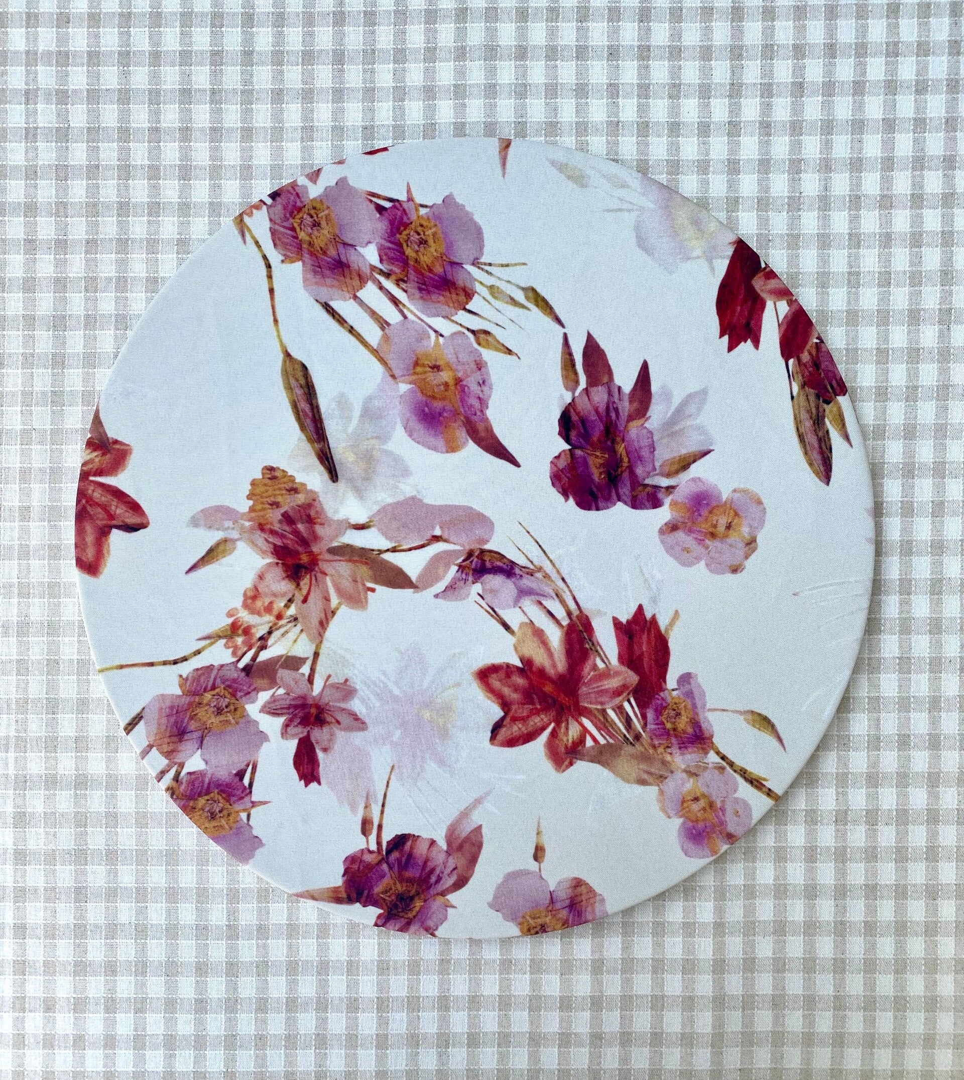 la funda de tela lavable se coloca sobre una base de madera de 39cm de diámetro.