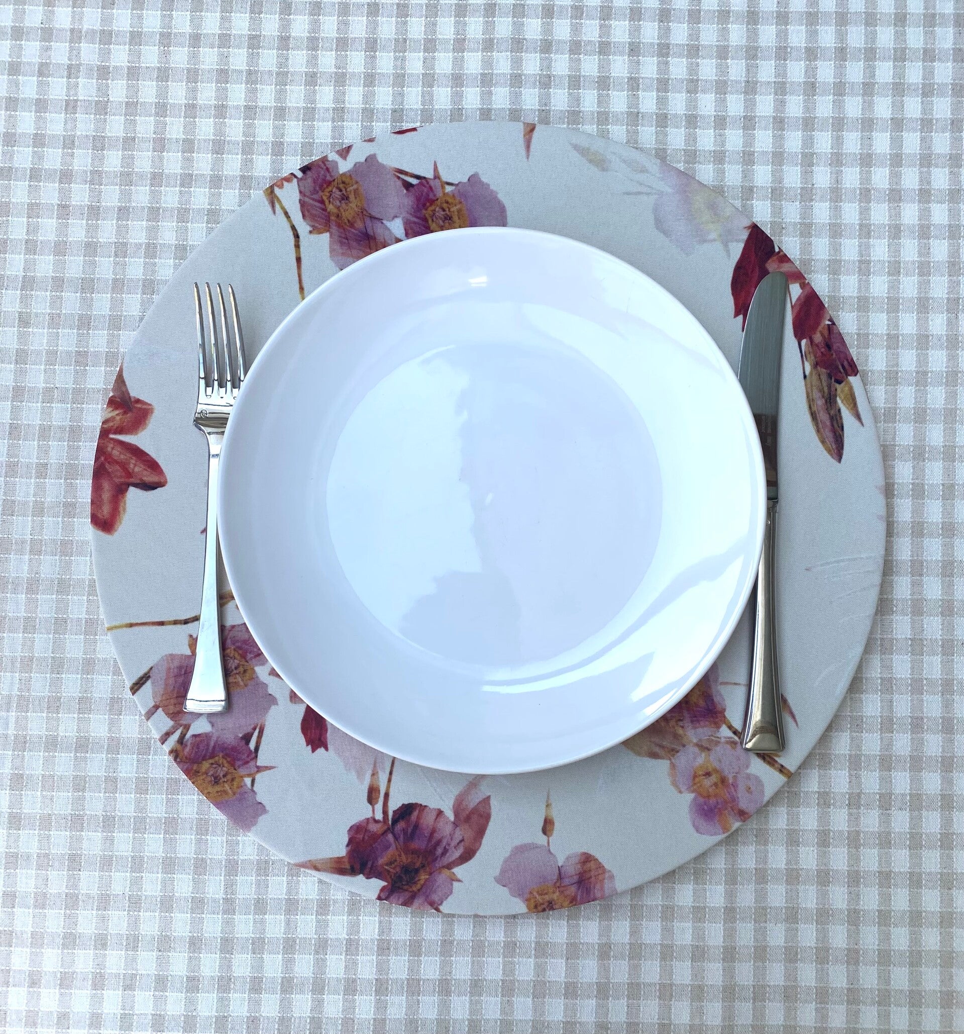 Bajoplato estampado Ocre Talla XL de 39cm de diámetro para que quepan también los cubiertos y así proteger más el mantel.